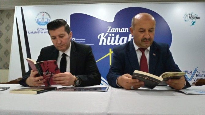 Kütahya’da, okuma alışkanlığının tüm topluma yayılması için İl Milli Eğitim Müdürlüğünce başlatılan ‘Zaman Dursun, Kütahya Okusun’ projesi kapsamında, Kütahya Öğretmenevinde kitap okuma etkinliği gerçekleştirildi.