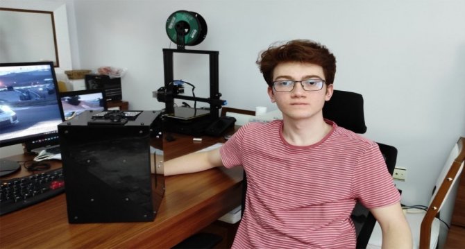 Kütahyalı lisesi öğrencisi Recep Görkem Akandere, evinde kurduğu atölyesinde parçalarını ve yazılımını kendisinin hazırladığı Covid-19 testlerinde...