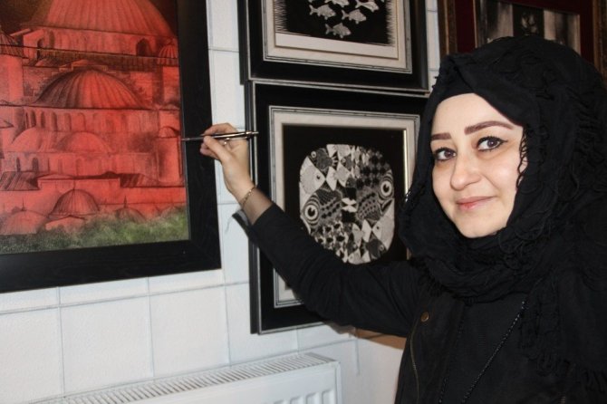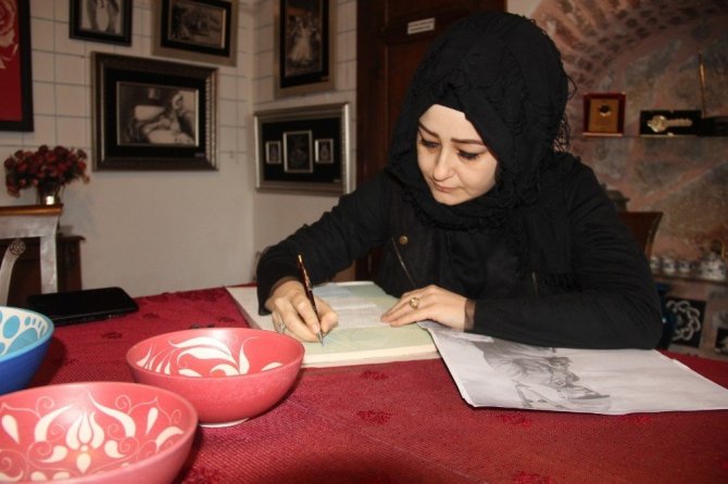 Kütahya Dumlupınar Üniversitesi (DPÜ) Seramik Bölümü mezunu Betül Erpolat, dikiş iğne ile seramik, karo, fayans veya granit üzerine hem sır altı, hem de sır üstü seramik boyası uygulandıktan sonra kaz...