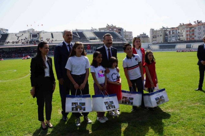 Aydın Valisi Hüseyin Aksoy, 23 Nisan dolayısıyla düzenlenen yarışmalarda dereceye giren öğrencilere ödüllerini takdim etti.