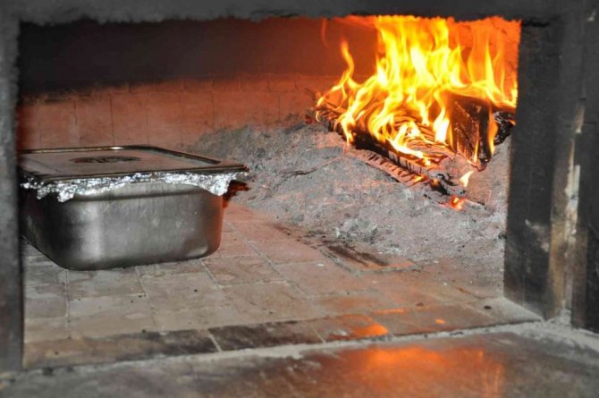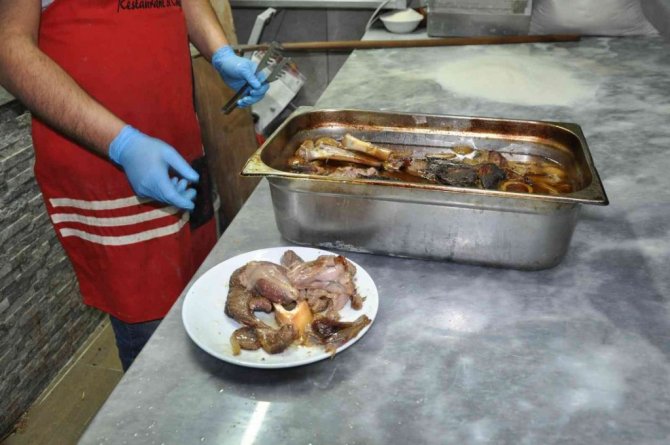 Kütahya'nın Simav ilçesinde faaliyet gösteren bir esnafın hazırladığı kuzu tandır kebabı, yaklaşık 9 saat fırında pişirildikten sonra müşterilerin beğenisine sunuluyor.