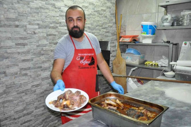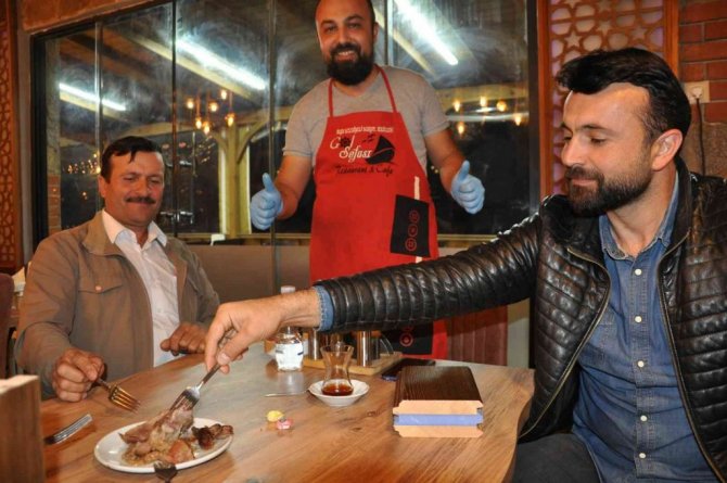 Kuzu tandırı müşterisi Hasan Ölmez, "Tandır kebabı çok lezzetli, herkese tavsiye ederim" diye konuştu.