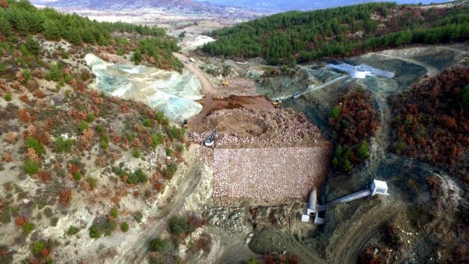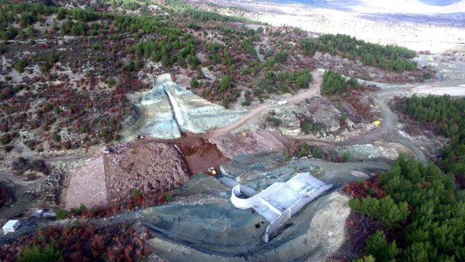 Manisa'nın Demirci ilçesinde yapımı devam eden Kuzuköy Barajı'nın yaklaşık yüzde 60'ı tamamlandı.