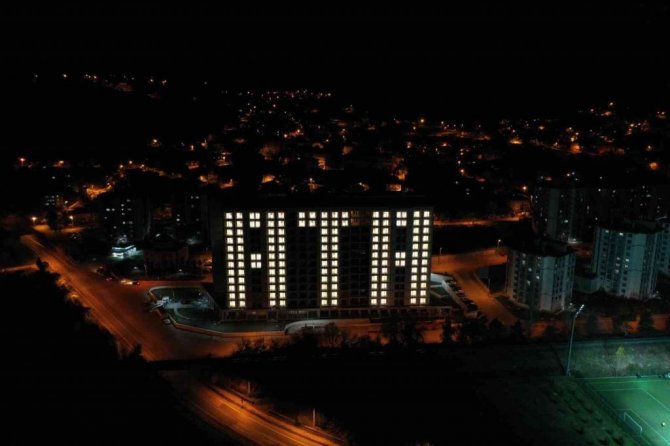 Türkiye Cumhuriyeti'nin kurucusu Gazi Mustafa Kemal Atatürk'ün vefatının 83. yılı dolayısıyla Karabük'te öğrenci yurdunun ışıklarıyla "ATA" ve "09.05" yazılı koreografi oluşturuldu.