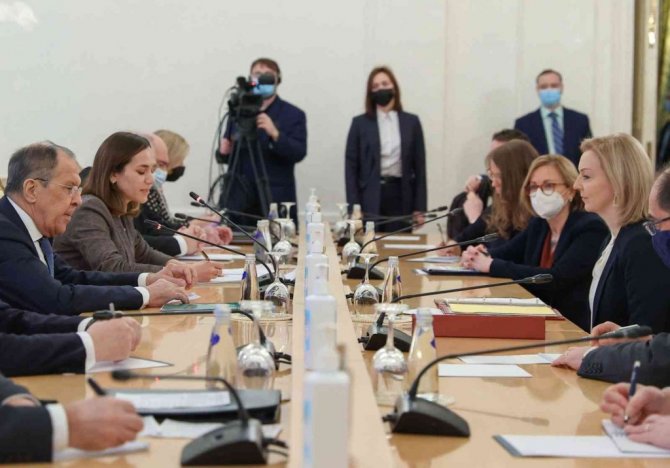 Rusya Dışişleri Bakanı Sergey Lavrov, başkent Moskova'daki dışişleri bakanlığında İngiltere Dışişleri Bakanı Liz Truss ile bir araya geldi. İkili Rusya'nın batı ülkelerine sunduğu güvenlik garantileri taslağı, Ukrayna ile yaşanan gerginlik ve ikili ilişkileri değerlendirdi. Bakanlar görüşmenin ardından gerçekleştirilen basın toplantısında Ukrayna krizi konusunda açıklamalarda bulundu. Bu konuda görüşmenin verimsiz geçtiğini ifade eden Lavrov, "Dürüst olmak gerekirse, konuşmamızın bir dilsizle sağırın konuşması gibi olmasından dolayı hayal kırıklığına uğradım. Dinliyoruz ama duymuyoruz. En detaylı açıklamalarımız boşa gitti" dedi.