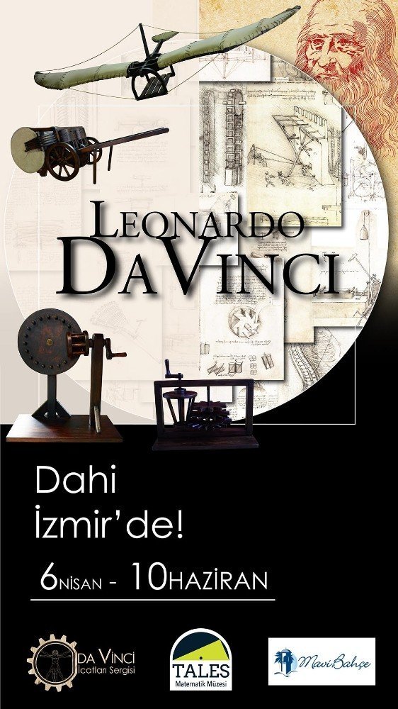 Tales Matematik Müzesi’nin katkıları ile 6 Nisan-10 Haziran tarihleri arasında İzmir MaviBahçe AVM’de yer alacak olan sergide Leonardo Da Vinci’nin 500 yıllık notlarından yararlanarak tamamen el işçiliğiyle oluşturulmuş 28 icadını bulunacak. Ayrıca Leonardo Da Vinci’nin mimarlık, mühendislik, anatomi gibi alanlardaki eskizlerinden yola çıkarak savaş makinalarını, piston, torna makinası ve tarihin ilk su kayağını görmenin yanında bugün kullandığımız birçok alette Leonardo Da Vinci’nin izlerine ve uygarlık tarihine dokunuşuna şahit olunacak.