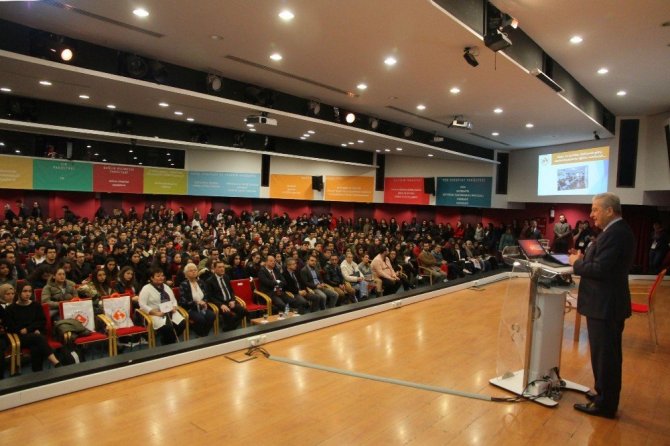 İEÜ Rektörü Prof. Dr. Can Muğan da meslek seçiminin kişinin hayatını etkilediğini belirterek, “Başarılı olmak istiyorsanız sevdiğiniz mesleği seçin. Üniversiteye geldiğinizde derslerin geçmek için olmadığını anlayacaksınız. Burada aldığınız derslerin hepsi bilginizi yapılandırmak için kurgulanır” dedi.