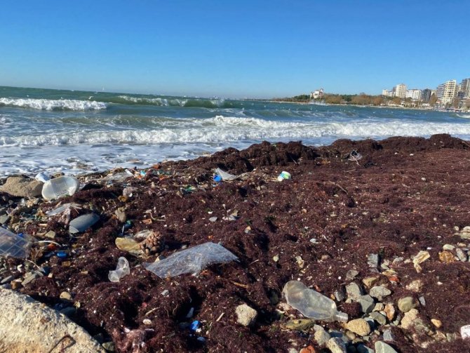 Lodos nedeniyle deniz altından çıkan atıklar Caddebostan Sahile vurdu