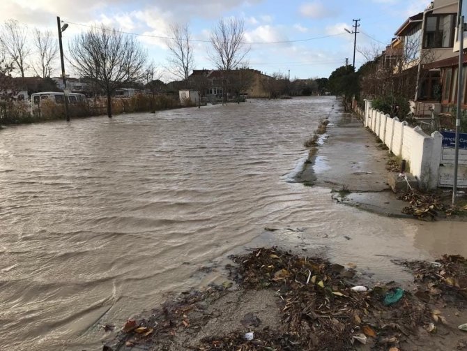 Edirne'nin Keşan ilçesinde şiddetli lodos sebebiyle deniz taştı. Yazlık evlerin bulunduğu sokaklarda ilerleyen deniz suları bazı binaların içine girdi.