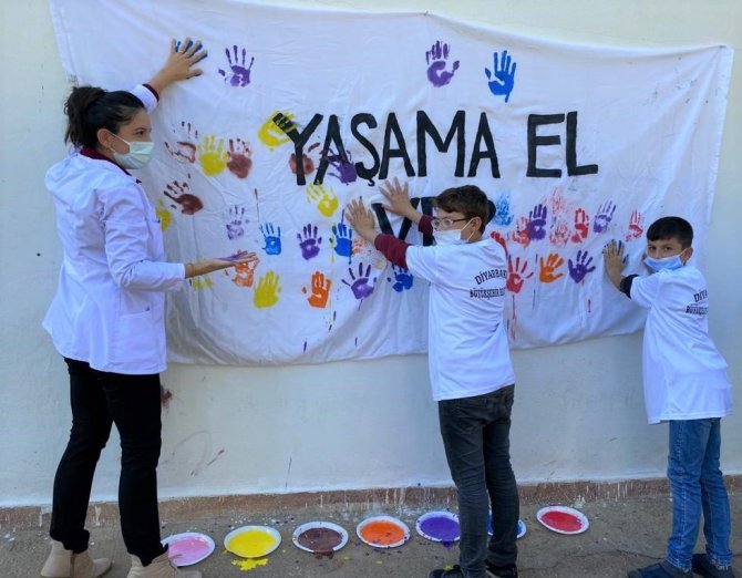 Öğrenciler tarafından lösemi çocuklara destek olmak ve farkındalık oluşturmak amacıyla "Yaşama El Ver" etkinliği yapıldı. Etkinlikte ellerini boya tabaklarına koyan öğrenciler, "Yaşama El Ver" temalı çalışmaya dokunarak boyalı elleriyle figürler yaptı. Öğrenciler program kapsamında şiirler yazıp okudu, resimler çizdi, duygu ve düşüncelerini dile getirdikleri kompozisyonlar hazırladı.