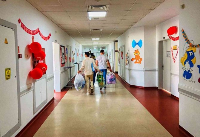 Aydın'da sınıf öğretmeni Yunus Emre Erden ile arkadaşları lösemi tedavisi gören çocuklara 23 Nisan Ulusal Egemenlik ve Çocuk Bayramı dolayısıyla oyuncak dağıtarak bayramlarını kutladı.