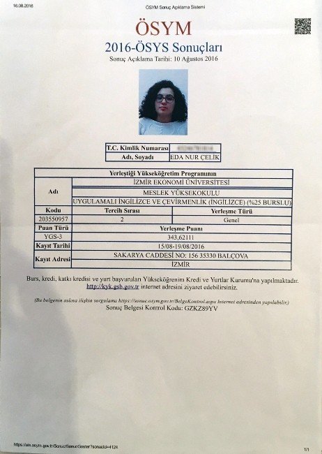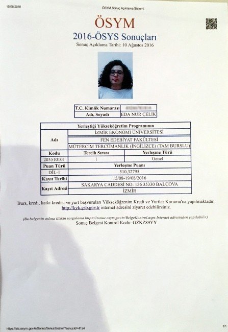 İzmir’in Buca ilçesinde yaşayan ve LYS’de 487 puan alarak dereceye giren 17 yaşındaki Eda Nur Çelik’in üniversite sevinci puanlarının sıfırlanmasıyla üzüntüye dönüştü. İzmir Ekonomi Üniversitesi Fen Edebiyat Fakültesi Mütercim Tercümanlık (İngilizce) Bölümü’ne tam burslu olarak kabul edilen Çelik, 15 Ağustos’ta üniversiteden gelen bir telefonla şok oldu. Üniversite yönetimi, sistemde yüzde 100 değil, yüzde 25 burslu olarak kayıtlı gözüktüğünü, bölüm olarak Meslek Yüksekokulu Uygulamalı İngilizce Çevirmenlik Bölümü’ne kaydının yapıldığını bildirdi. Neye uğradığını şaşıran genç kız, hemen sonuçları kontrol etmek için ÖSYM’nin sitesine girdi ve puanlarının ilk açıklandığı haliyle durduğunu görerek hemen sonuçları kameraya aldı. Bir gün sonra tekrar ÖSYM’nin internet sitesine giren Çelik, bu kez YGS’den aldığı 468 puanının 298’e, LYS’den aldığı 487 puanının ise sıfıra düştüğünü gördü. Bunun üzerine genç kız ve ailesi dava açtı.