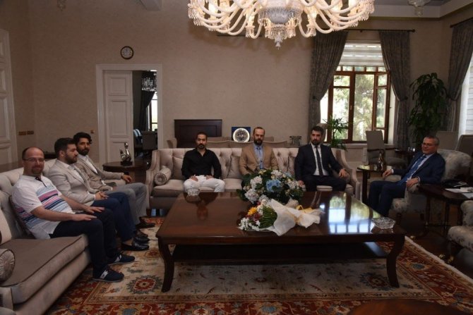Manisa Genç İş Adamları Derneğinin (MAGİAD) gerçekleştirdiği olağanüstü genel kurulda başkanlığa seçilen Halil Ağırbaşlı ve yönetimi, Vali Ahmet Deniz’i ziyaret ederek, projelerini ve çalışmalarını anlattı.