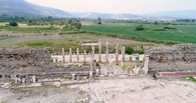 Aydın'ın önemli tarihi yerlerinden olan Magnesia Antik Kenti'nde kazı başkanları devir teslim töreni gerçekleştirildi.