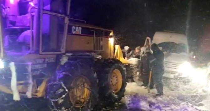 Şemdinli kara yolunda yoğun kar ve tipiden dolayı kara saplanarak mahsur kalan minibüs ve yolcular kurtarıldı.