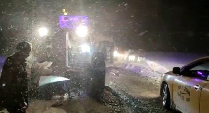 Karayolları ekiplerinin müdahalesi sonucu minibüs saplandığı yerden kurtarıldı. Minibüste bulunan vatandaşlar ise karayolları ekiplerine teşekkür ettiler.