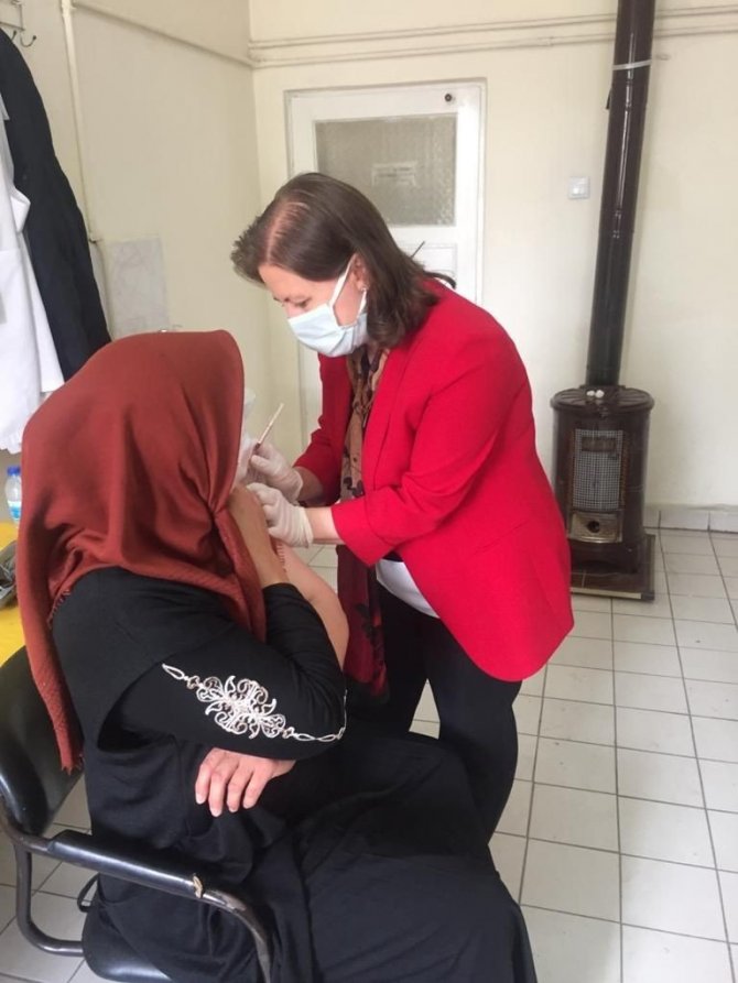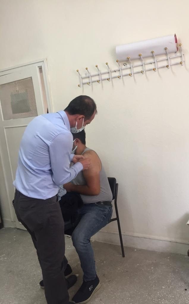 Kocasinan İlçe Sağlık Müdürü Dr. R. Özlem Ulutabanca, Yemliha ASM'de görevli Aile Hekimi Fatih Dere ve diğer sağlık çalışanlarının iknaları sonucu 265 vatandaş aşısını yaptırdı.