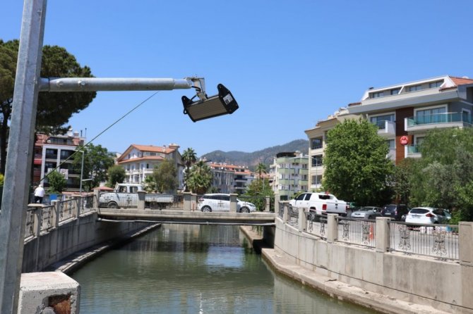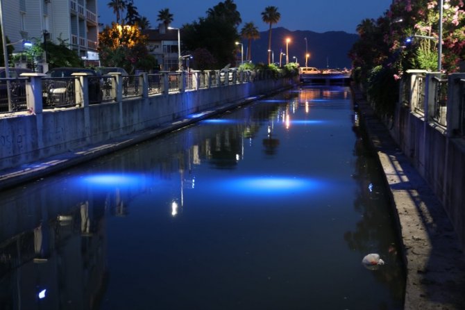 Muğla'nın Marmaris ilçesindeki Maksim Deresi'nin aydınlatma sistemi tamamen yenilenirken, dere ve çevresi geceleri ışıl ışıl oldu.