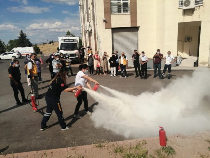 Malatya 112 çalışanlarına tahliye ve yangın söndürme tatbikatı