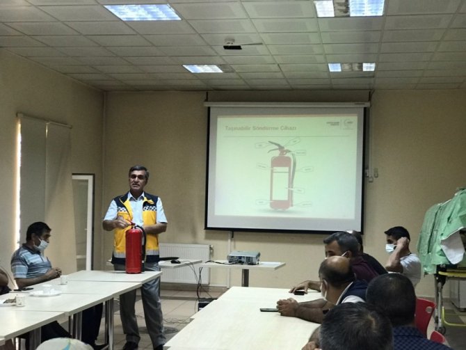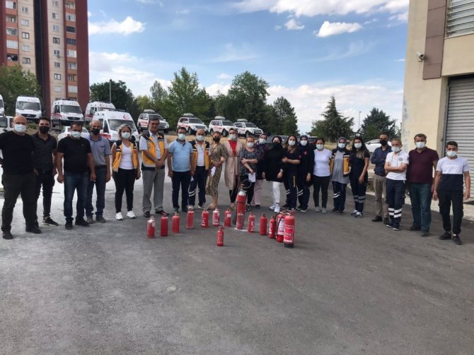 Malatya'da 112 Ambulans Servisi çalışanlarına yönelik teorik, tahliye ve yangın söndürme tatbikatı gerçekleştirildi.