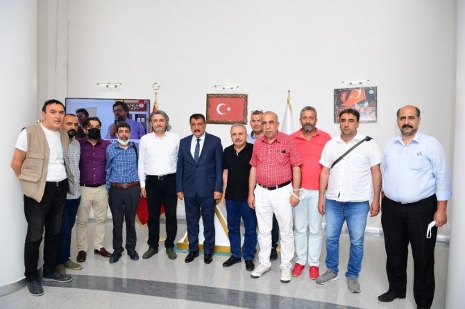 Malatya Gazeteciler Cemiyeti Başkanı Vahap Güner ve yönetim kurulu üyeleri, Malatya Büyükşehir Belediye Başkanı Selahattin Gürkan'ı makamında ziyaret etti.