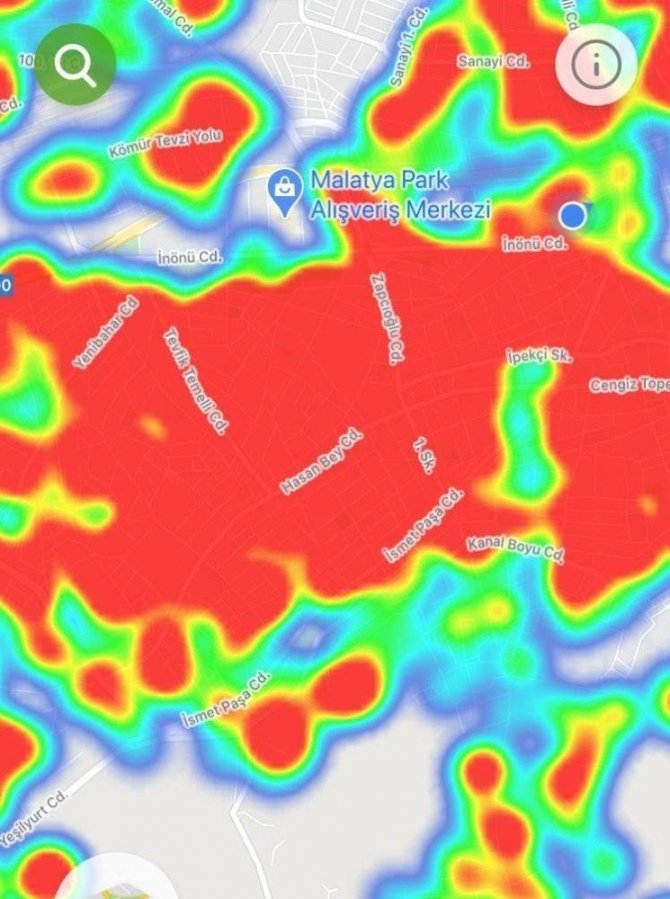 Malatya’da korona virüs vakalarındaki artış endişeye neden olmaya devam ederken, Sağlık Bakanı Fahrettin Koca’nın geçtiğimiz günlerde sosyal medya hesabından Malatya’da vaka sayısının yüzde 35 arttığını söylemesi ile yaşanan bu artış HES uygulamasında da göze çarptı. Yoğun bakı doluluk oranının yüzde 61 olduğu Malatya’nın HES uygulamasında virüsün riskli olduğunu gösteren kırmızı renge boyanması da tehlikenin boyutlarını gözler önüne serdi. Kent merkezinin yanı sıra ilçelerde de neredeyse vaka olmayan sokak ve caddenin kalmadığı görülürken, kırmızının olmadığı tek yerin ise Malatya Şehri Mezarlığı olduğu dikkatlerden kaçmadı.