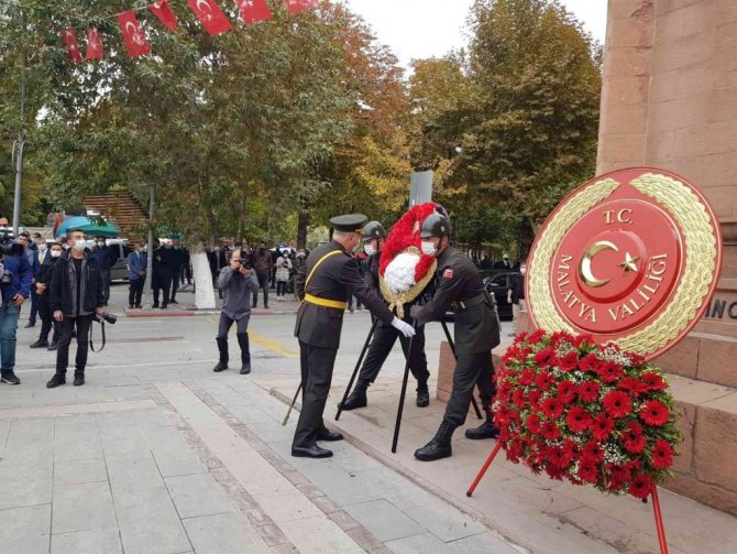 Malatya'da 29 Ekim Cumhuriyet Bayramı'nın yıldönümü nedeniyle Atatürk anıtına çelenk bırakıldı.
