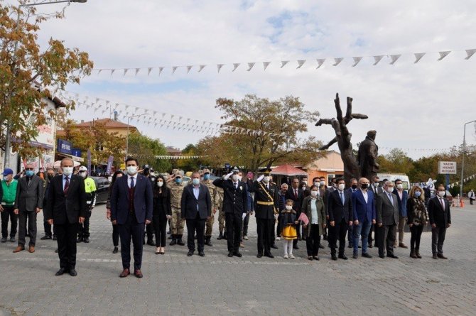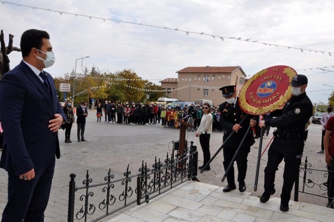 Malatya'nın Hekimhan İlçesi'nde de Cumhuriyetin Kuruluşunun 98. yılı programı Atatürk Anıtına çelenklerin sunulması ile başladı.