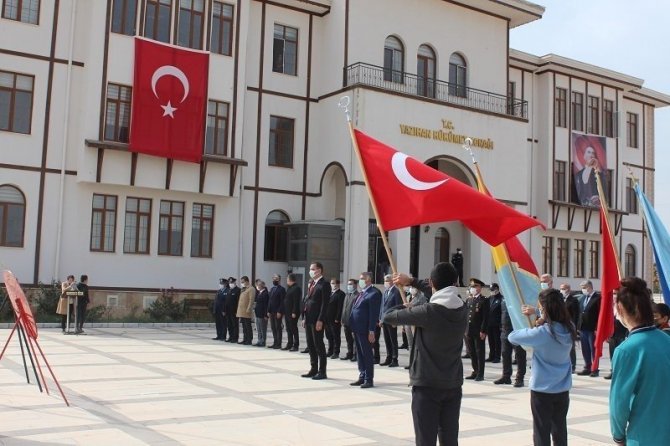 Cumhuriyet Bayramı'nın 98. yıl dönümünde Malatya'nın Yazıhan ilçemsinde Hükümet Konağı bahçesinde Atatürk Anıtına Kaymakam Mehmet Faruk Kazdal ile İlçe Belediye Başkanı Nevzat Öztürk tarafından çelenk sunumu yapıldı ve saygı duruşunun ardından İstiklal Marşı okundu.