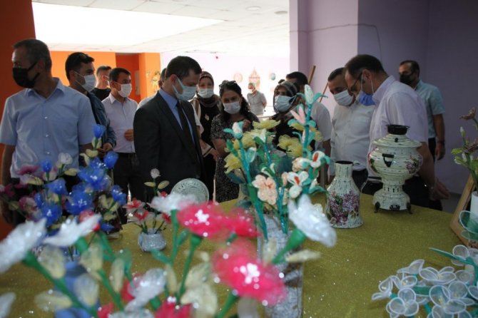 Serginin açılışını yapan Malazgirt Kaymakamı Yiğit Yaşar Demirer ve Belediye Başkanı Cengiz Altın sergiyi gezerek kursiyerleri tebrik etti.