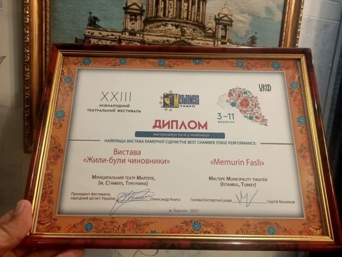 Festivalde Maltepe Belediye Tiyatrosu, "Memurin Faslı" isimli modernize edilmiş orta oyunuyla sahne aldı. Yazar ve senarist Coşkun Irmak'ın yazdığı müzikli oyunda, günlük yaşam dertleri seyirciyle buluştu. Maltepe Belediye Tiyatrosu Genel Sanat Yönetmeni Kubilay Erdelikara festivalden iki ödülle dönmekten gurur duyduklarını ifade ederek "Festivale Ukrayna'nın farklı şehirlerinden ve 10 ülkeden tiyatro grupları katıldı. Festivalde geleneksel Türk tiyatrosu özelliklerini taşıyan oyunumuzla dikkat çektik. Geleneksel tiyatromuzla bunu başarmak mutluluk verici. 50 oyun arasından en iyi oyuncu grubu ödülünü aldık. Tüm ekibe, tiyatromuzun kurulmasını teşvik ederek verdiği destekten dolayı Maltepe Belediye Başkanımız Sayın Ali Kılıç'a teşekkür ederiz" dedi.