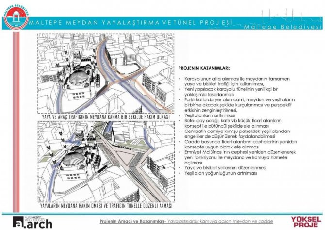 Maltepe Meydan Yayalaştırma ve Tünel Projesi'nin ilk etabı başladı. İstanbul Büyükşehir Belediyesi tarafından gerçekleştirilecek çalışma kapsamında Bağdat Caddesi ile Maltepe merkez bölgesinde 600 metrelik tünel ile trafik yer altına alınacak. Bu sayede Maltepe 18 bin metrekarelik yepyeni ve modern bir meydana kavuşacak. Yeni yapılacak meydan tamamen yayalara açık olacak.