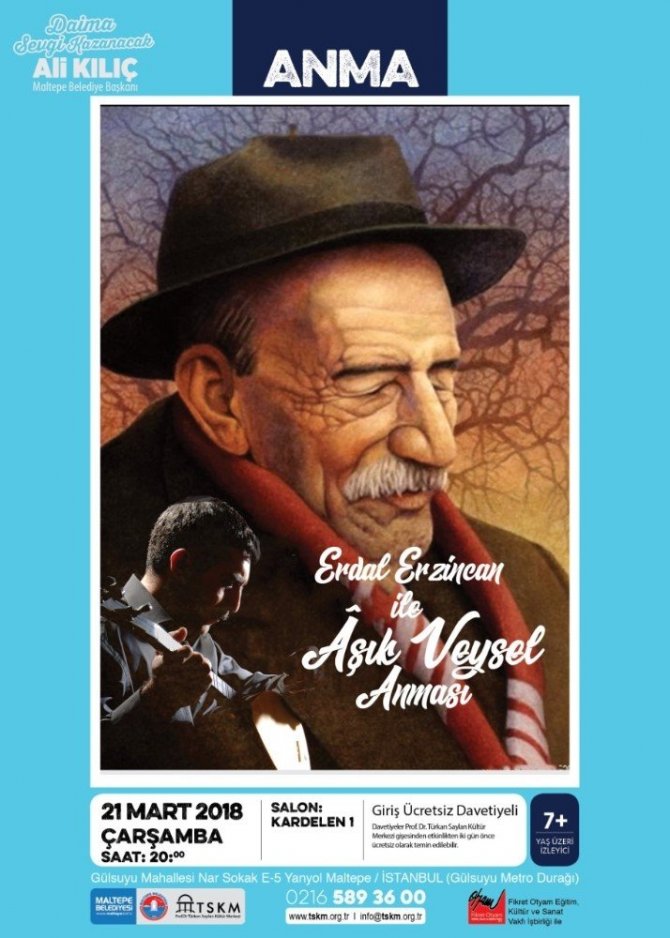 Türk halk müziğinin güçlü yorumcusu Erdal Erzincan, halk ozanı Aşık Veysel’in 45. ölüm yıldönümü nedeniyle düzenlenecek anma programında TSKM’de sahne alacak. Geleneksel Türk müziği ile çeşitli dünya müziklerini sentezleyen çalışmalara imza atan Mehmet Refik Kaya da, “Sanat ile Bir Ömür” isimli konseriyle müzikseverlerin karşısına çıkacak.