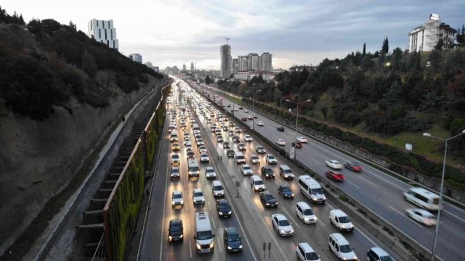 "Bostancı-Kayışdağı Arası Yol Kavşak Projesi" kapsamında başlatılan alt geçit çalışmaları nedeniyle D-100 kara yolunda şerit sayısı düşürüldü. Çalışmalar nedeniyle daraltılan yolda uzun araç kuyrukları oluşurken, trafikte oluşan yoğunluk havadan görüntülendi.