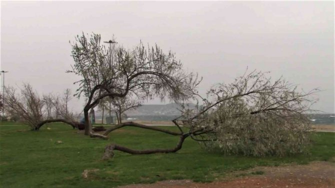 Öte yandan şiddetli rüzgara dayanamayan bazı ağaçların devrildiği görüldü.