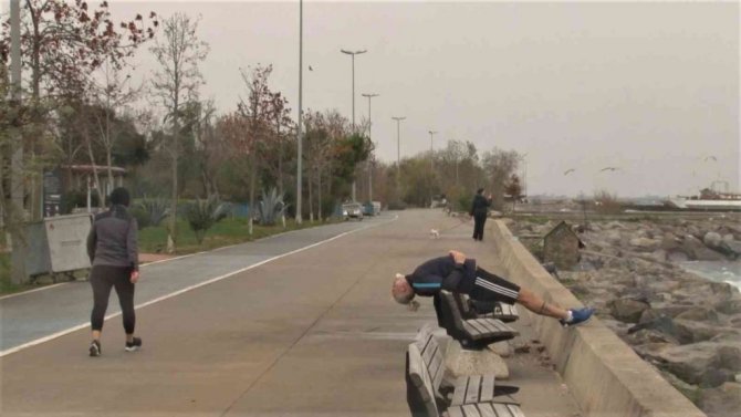 Sahile yürüyüşe çıkan Cengiz Burçak, "Çok lodos var, resmen uçuyoruz. Her şeye rağmen güzel bir manzara var. Yürüyüşe çıktım. Tadını çıkarmak lazım" diye konuştu.