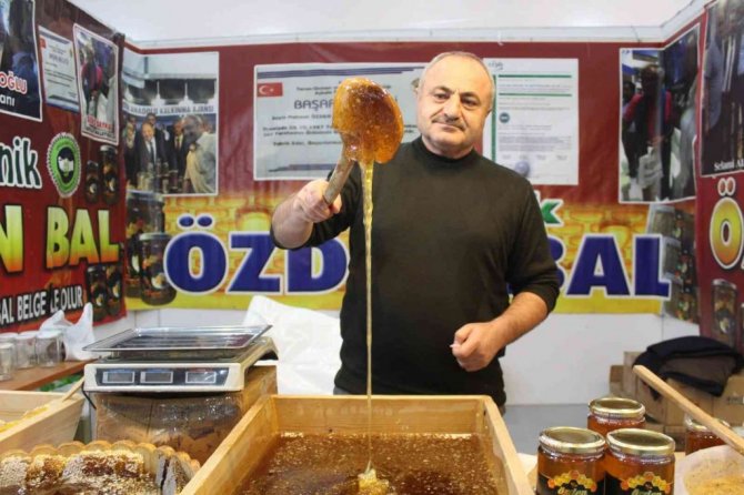 Şifa deposu ballarda Kafkas arısını kullandıklarını belirten Vahit Özden, "Balımız Kars, Ardahan ve Iğdır bu yörenin ballarıdır. Ballarımız dünyanın beşinci çiçek çeşidine sahip ballardır. Tabii bu balların önemli olması, balın hakiki bal yani organik bal olması önemlidir. Dediğimiz gibi ballarda çok hileli olaylar dönüyor. Bunun için önemli olan halkımıza akıtma organik bal yedirmek. Biz de inşallah onu yedirmeye geldik. Arılarımızı da biz genelde hakiki balcı olarak ballarımızda bilhassa sonuç gören bal arısı olarak Kafkas arısı kullanıyoruz. Kafkas arısı doğaya daha iyi adapte oluyor. Bilhassa Doğu Anadolu dediğim gibi dünyanın en zengin yüzde 70 bal çiçekleri çeşidine sahip bir ülkemiz var" diye konuştu.