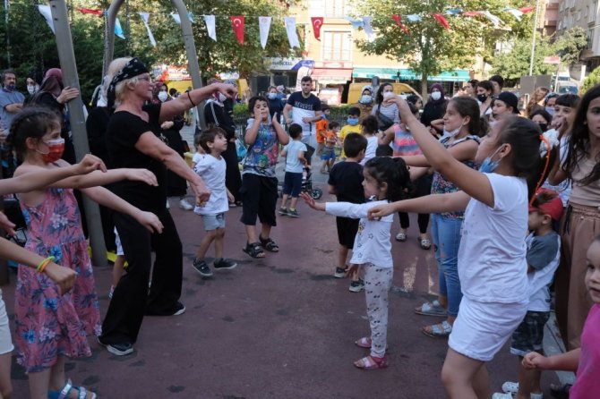 Eğitmenler eşliğinde dünyanın en yaygın fitness programlarından zumba yapıldı. Pandemi nedeniyle evlerinden çıkamayan vatandaşlar müziğin ve dansın ritmiyle sporu barındıran zumbayla eğlenceli vakit geçirdi. Toprak Sahne oyuncuları çorap kukla ve eğlenceli oyunlar atölyesi, tahta bacak gösterileri, yüz boyama ve balon katlama etkinlikleriyle çocuklara renkli anlar yaşattı. Sanatçı Özgün Aytar'ın pandomim gösterisi miniklerin beğenisini topladı.