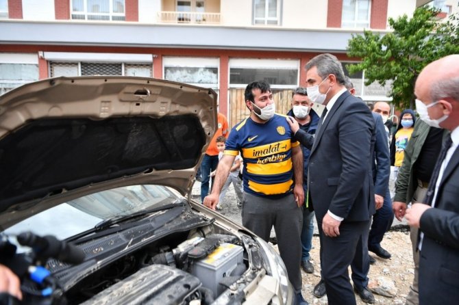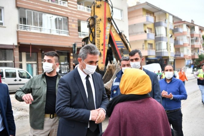 Mamak Belediye Başkanı Murat Köse, dün öğle saatlerinden itibaren etkili olan sağanak yağış sonrası Mamak Türközü Mahallesi ve Dereboyu Caddesi'nde yaşanan sel felaketinin yaşandığı bölgede incelemelerde bulundu. ASKİ çalışmaları dolayısıyla ve yine ASKİ tarafından kazılan yerlerin Ankara Büyükşehir Belediyesi tarafından asfaltlanmaması sonucu oluşan hendeklerin sebep olduğu sel felaketinin ardından vatandaşları ve esnafı dinleyen Başkan Köse, mahalle sakinlerine geçmiş olsun dileklerini iletti. Esnaf ve vatandaşla sık sık bir araya gelerek sıkıntıları dinleyen Köse, " Hemşehrilerimizin mağduriyetinin giderilmesi noktasında belediye olarak üzerimize düşen ne varsa yapmaya hazırız. ASKİ'nin bölgede gerçekleştirdiği çalışmaların neticesinde, Ankara Büyükşehir Belediyesi'nin sorumluluğunda olup zamanında atılmayan asfalt ve kazıların sebep olduğu sel felaketi dolayısıyla hemşehrilerimiz mağdur. Ekiplerimiz olay yerinde, ilk andan itibaren teyakkuz halindeydi. Selden dolayı kapanan mahalle yollarını tekrardan ulaşıma açtık. Hanelerde yaşanan su baskınlarına müdahalede bulunduk. Vatandaşlarımızın yanındayız. Afet sonucu oluşan hasarı onarma konusunda Mamak Belediyesi olarak üzerimize düşeni yerine getireceğiz, kısa sürede hayatı normale döndüreceğiz. Ekiplerimiz de yine teyakkuz halinde olacak" dedi.