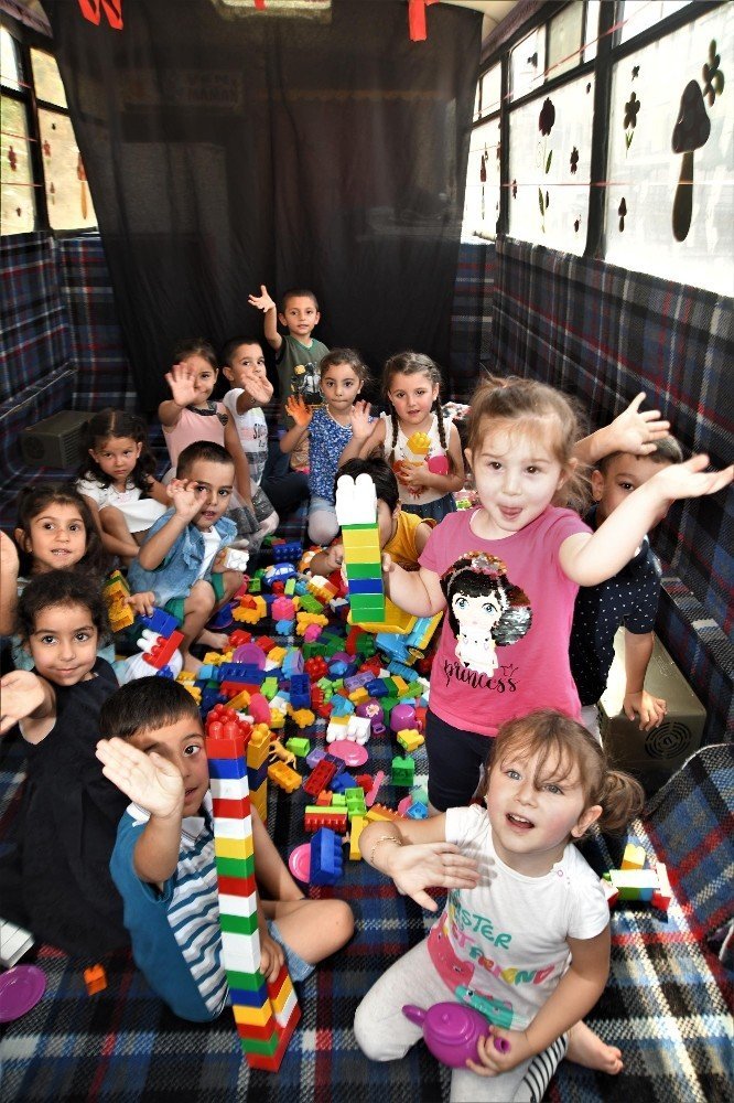 Dolayısı ile tam bir anasınıfı şeklinde dizayn edilen mobil anaokulumuzun içerisinde eğitim araç gereçleri, öğretici oyuncaklar ve birçok materyal bulunuyor. Otobüsün içerisinde bir anaokulunda olan bütün eğitimler veriliyor. Böylelikle mobil okulumuz çeşitli sorunlara yönelik bir takım akılcı çözümler sunulabiliyor” dedi.