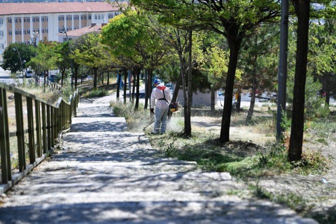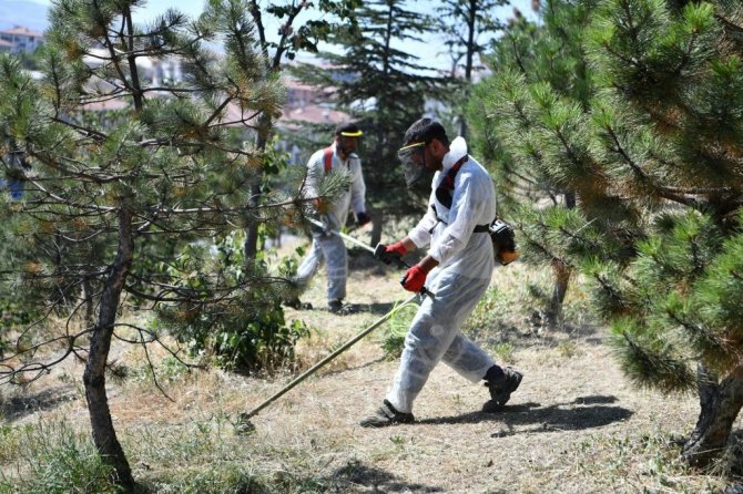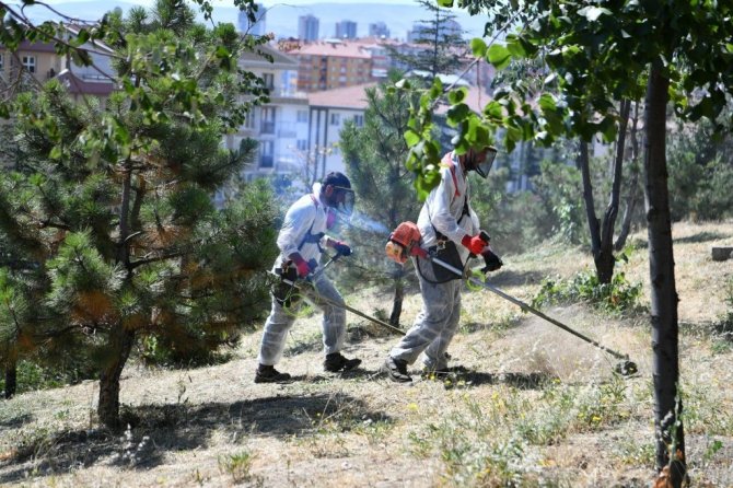Mamak Belediyesince ilçe genelinde ağaçlandırma alanları başta olmak üzere boş araziler, park ve bahçelerde yangın riski teşkil eden yabani otlar temizlendi.