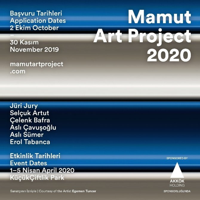 Akkök Holding ana sponsorluğunda 2015 yılından bu yana gerçekleşen Mamut Art Project, bu yıl sekizinci kez güncel sanatta umut vaat eden sanatçılara işlerini sergileyeceği benzersiz bir keşif alanı sunuyor. 30 Kasım’a dek başvuruları kabul eden Mamut Art Project’in jüri üyeleri arasında ise; Sabancı Üniversitesi Görsel Sanatlar ve Görsel İletişim Tasarım Programı Koordinatörü, sanatçı ve müzisyen Selçuk Artut, küratör, yazar ve SAHA Derneği Direktörü Çelenk Bafra, sanatçı Aslı Çavuşoğlu; artSümer Galeri Kurucusu Aslı Sümer, OMM - Odunpazarı Modern Müze’nin kurucusu ve koleksiyoner Erol Tabanca bulunuyor.