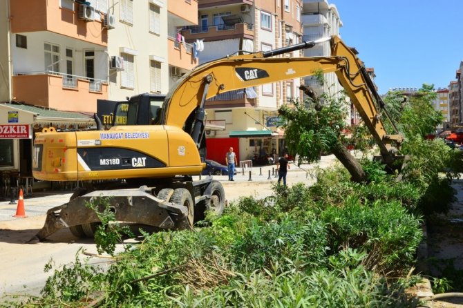 Bir yandan büyük yangın felaketinin yaralarını sarmak için çaba sarf eden Manavgat Belediyesi ekipleri, bir yandan da kenti geleceğe taşıyacak cadde düzenlemesi projelerine devam ediyor.