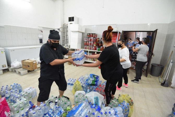 Belediye aşevinde 3 minibüs, gece yarısı bölgeye giderek yardım malzemelerini bıraktı. Sabah saatlerinde ise bir minibüs su, ayran, hazır yiyecek ve çocuk bezi gibi temel ihtiyaç maddeleriyle doldurularak bölgeye gönderildi.