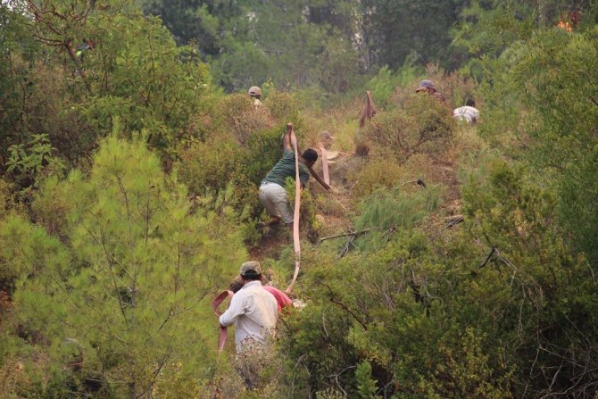 Manavgat yangınında vatandaşlar da canla başla çalışıyor