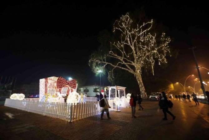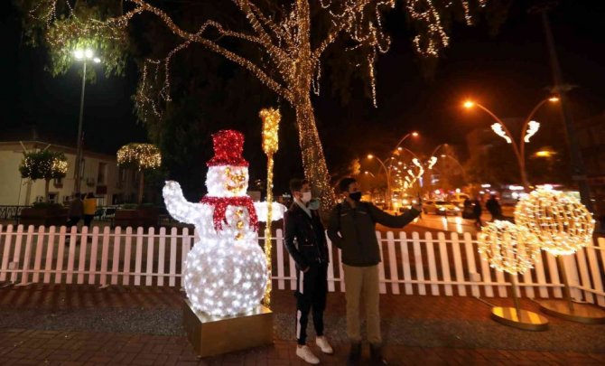 Manavgat Belediyesi, yaklaşan yılbaşı öncesinde kent genelini tasarruflu led ampullerden oluşan süslemeler ile donatarak vatandaşlar için özel fotoğraf çekim alanları oluşturdu.