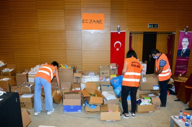 Yangından zarar gören vatandaşların kullanması için gönderilen ilaç ve tıbbi yardım malzemeleri, düzenlemesi yapılarak yine gönüllü eczacılar, gönüllü vatandaşlar ve Manavgat Belediyesi personeli tarafından yangın bölgelerine ulaştırılıyor. Yanık kremi, vitaminler, ağrı kesiciler gibi birçok ilaç, ihtiyaç tespiti sonrasında vatandaşa teslim ediliyor. Türkiye'nin dört bir yanından yardımseverlerin gönderdiği ilaçların arasında duygulandıran notlar da çıkıyor. Manavgat Belediye Başkanı Şükrü Sözen, "Orman yangınlarında evlerini kaybeden vatandaşlarımızın sağlık ihtiyaçlarını yerinde karşılamak amacıyla Atatürk Kültür Merkezi'nde, gönüllü doktorlarımızın ve eczacılarımızın desteği ile vatandaşlarımızın yaralarını sarmaya devam ediyoruz. Koordineli çalışma yürüterek ihtiyaç sahibi vatandaşlarımıza bire bir ulaşıyoruz. El ele vererek en kısa sürede tüm yaralarımızı birlikte saracağız" dedi.