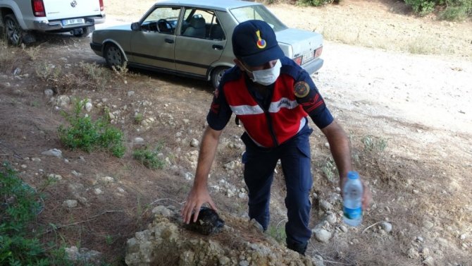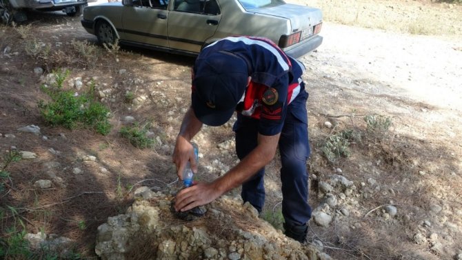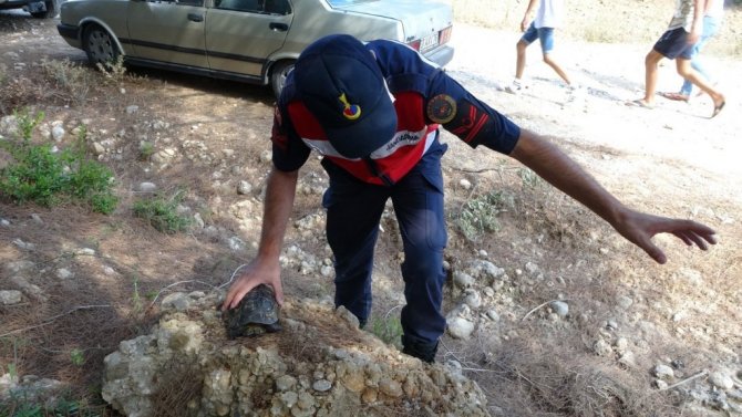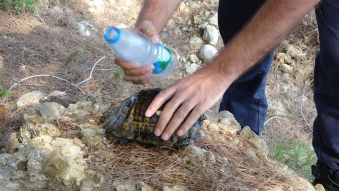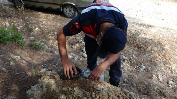 Manavgat’ta jandarma, kaplumbağayı yanmaktan kurtardı