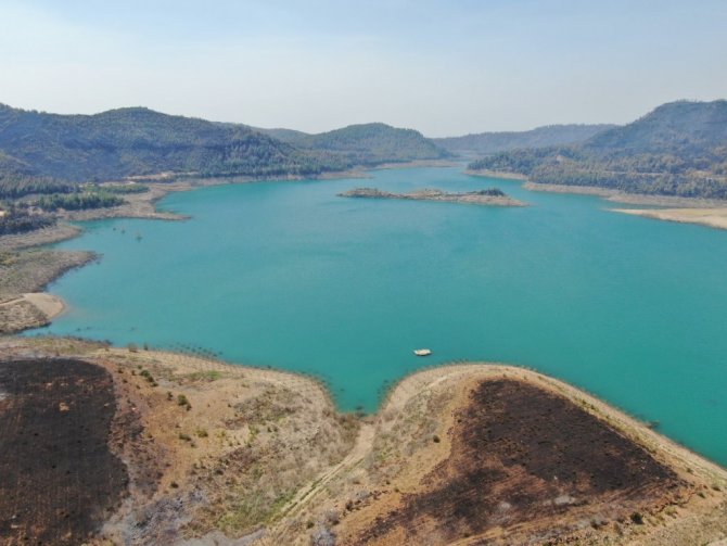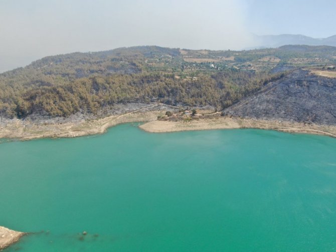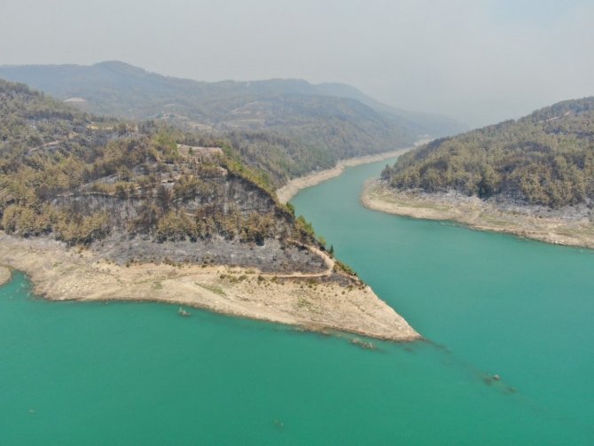 Manavgat'ın 4 farklı noktasında 28 Temmuz'da öğle saatlerinde başlayan ve bir haftadır devam eden orman yangını kontrol etmek için çalışmalar devam ediyor. Birçok mahallenin etkilendiği, hayvanların telef olduğu yangında milyonlarca çam ağacı ve fidanı yandı. Yangın ilçe merkezinden yaklaşık 45 kilometre uzaklıkta sarp kayalık alanda etkisini sürdürürken, yanan alanlar havadan drone ile görüntülendi. Simsiyah bir renkle kaplı olan alanda, sadece yanmayan birkaç alan ve yolların ayırt edilebildiği görüldü. Çam fidanlarının yanarak kuru ve siyah bir dal haline kaldığı görülen görüntülerde, yangının önünde ne varsa yaktığı gözlemlendi. Öte yandan Naras Baraj Göleti'nin manzarası ve etrafındaki yanan alanlar da görüntülendi.