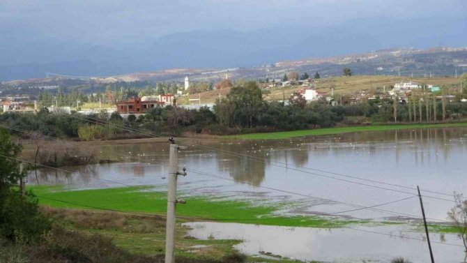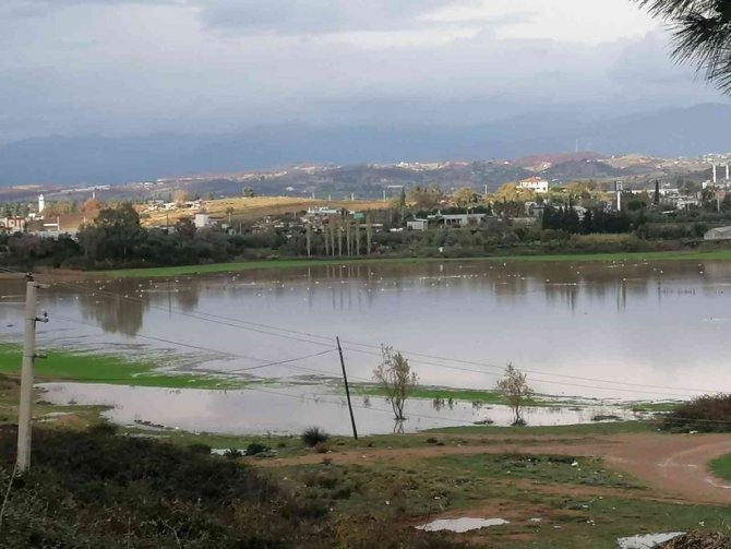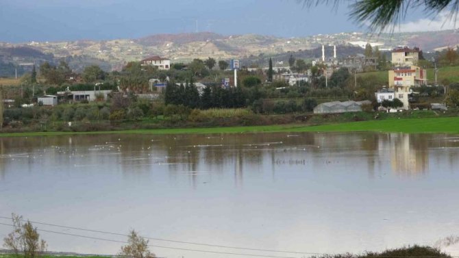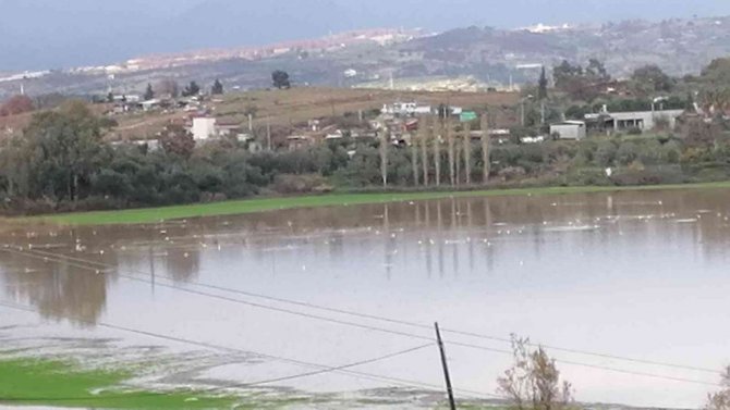 Antalya'nın Manavgat ilçesinde etkili olan sağanak yağmur ve dolu, ekili arazilerin sular altında kalmasına neden oldu. Kızılağaç Mahallesi Yemişlisu mevkiinde sular altında kalan arazi, su kuşlarının istilasına uğradı.